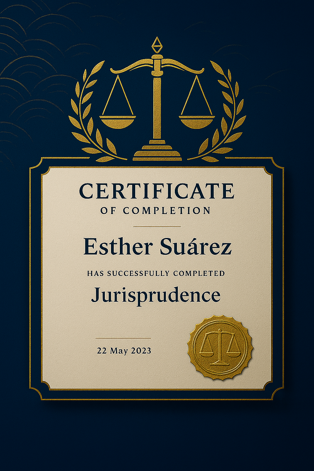 /Collection: /by davooda/Type: PNG/A sophisticated certificate of completion featuring gold accents, scales of justice, and elegant typography. Ideal for legal education or professional achievements.