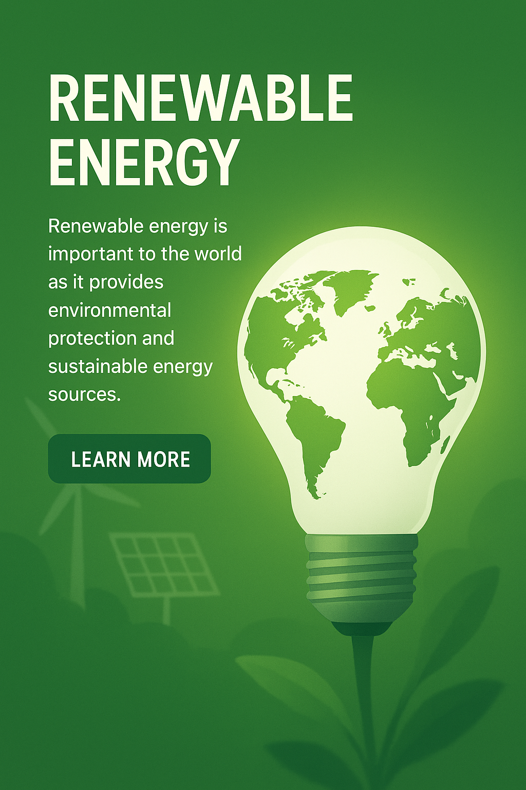 /Collection: /by davooda/Type: PNG/A visually appealing graphic highlighting the importance of renewable energy, featuring a light bulb with a world map. Ideal for educational campaigns or environmental initiatives.