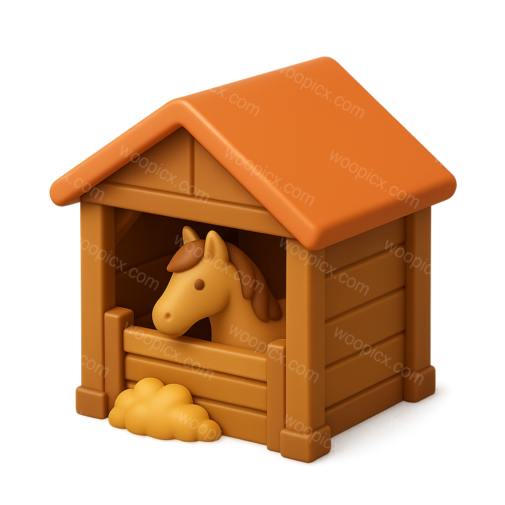 Stylized 3D Horse Shelter Icon with Isometric Design