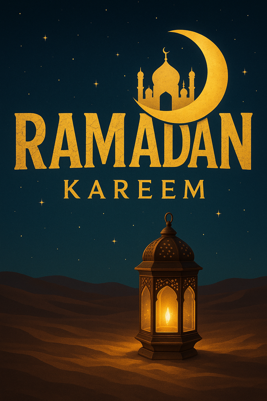 /Collection: /by davooda/Type: PNG/A beautifully designed greeting card for Ramadan featuring a glowing lantern and a mosque silhouette against a starry night sky. Ideal for festive celebrations and cultural events.