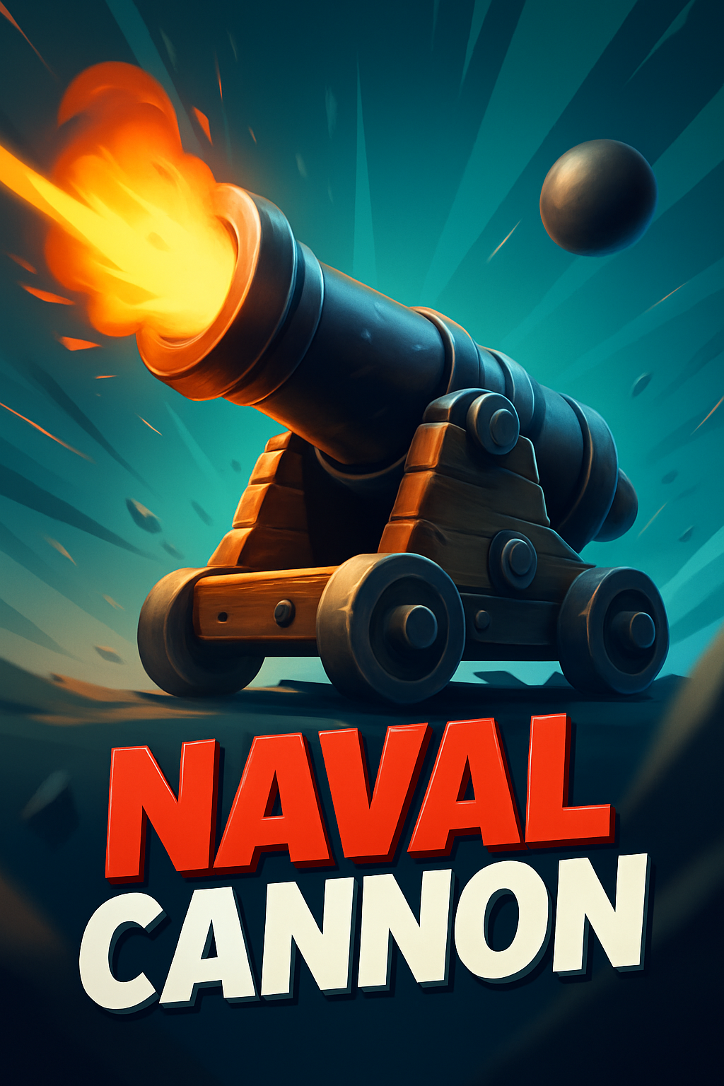 /Collection: /by davooda/Type: PNG/A striking 3D illustration of a naval cannon firing, featuring dynamic lines radiating from the center. The title 'NAVAL CANNON' is prominently displayed in bold colors, enhancing the energetic feel of the scene.