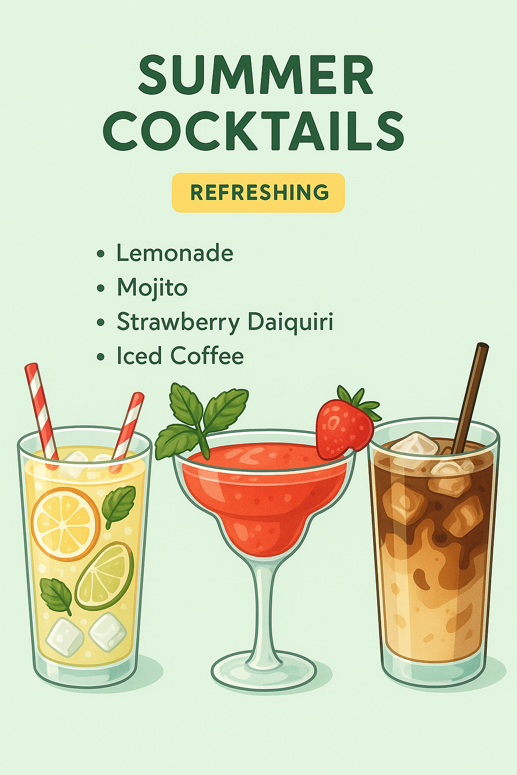 Illustrative Summer Cocktails Graphic with Refreshing Drink Options