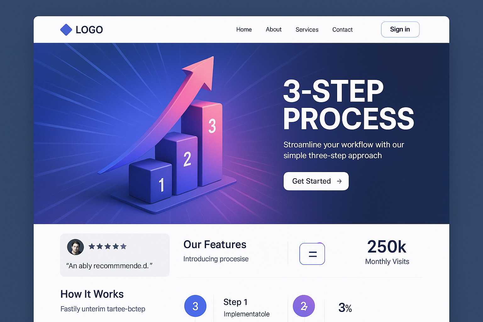 Dynamic Landing Page with 3-Step Process Infographic
