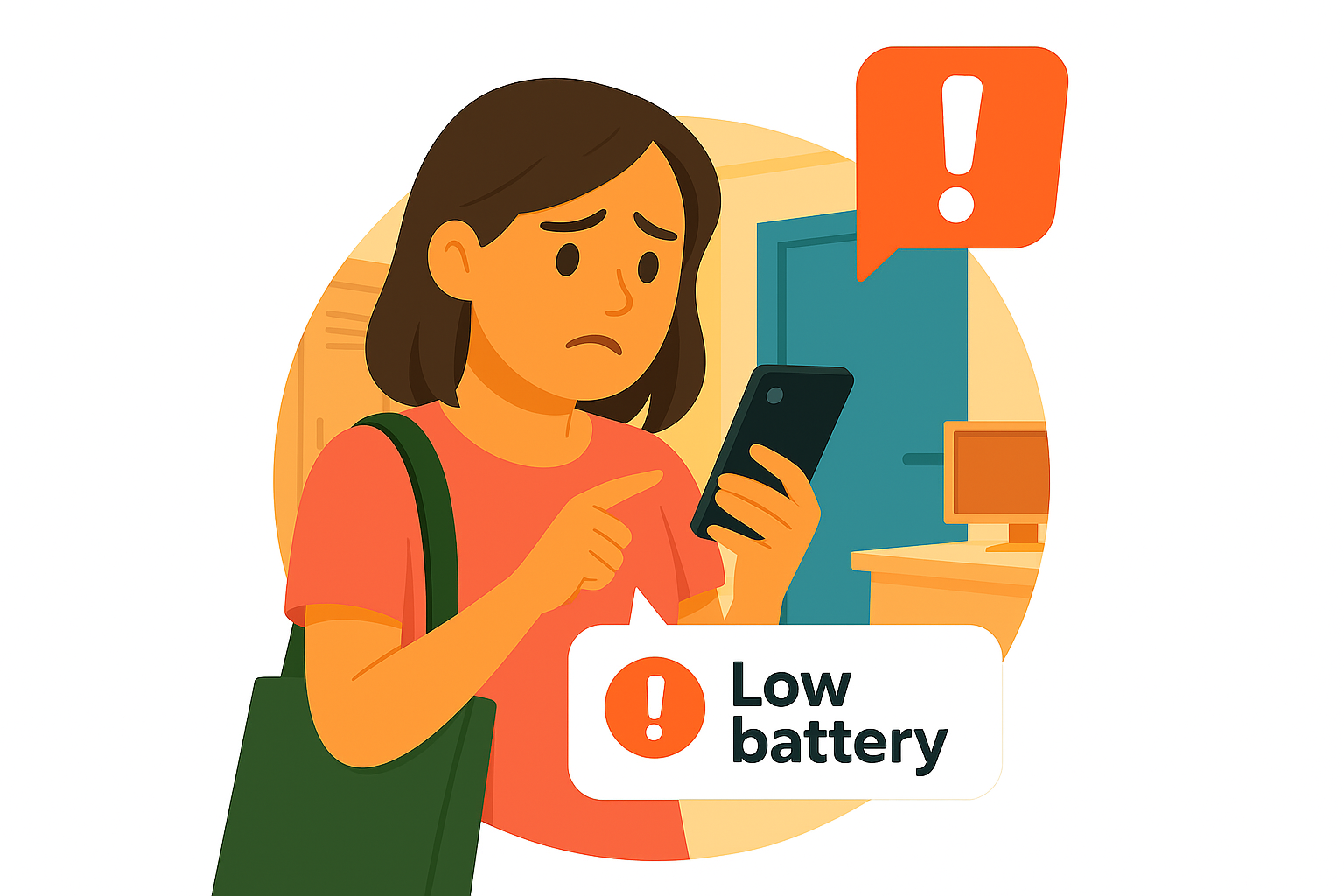 Illustration of a Concerned Person with Low Battery Notification