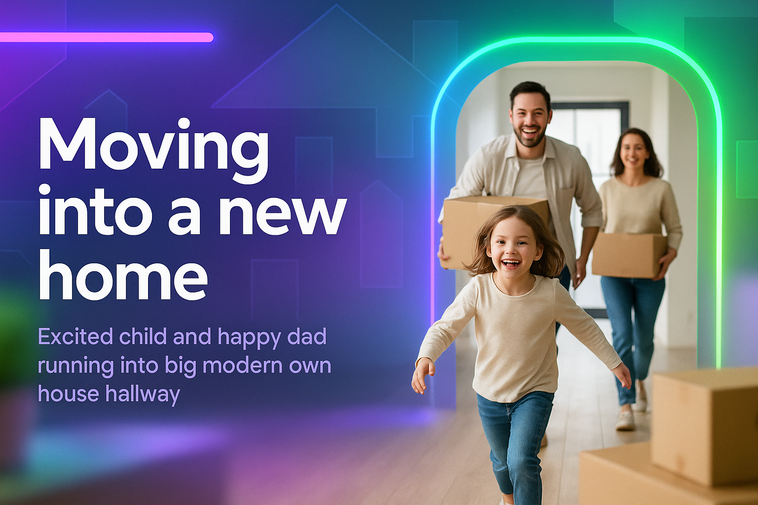 /Collection: /by davooda/Type: PNG/A vibrant lifestyle image depicting a family joyfully moving into a new home, highlighting happiness and excitement. Ideal for real estate marketing or family-related content.