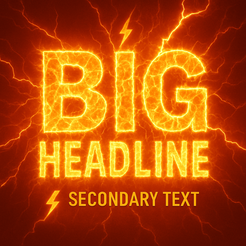 Vibrant graphic featuring a bold headline with fiery text effects, ideal for attention-grabbing promotions or announcements. The electric design and color scheme create a striking visual impact.