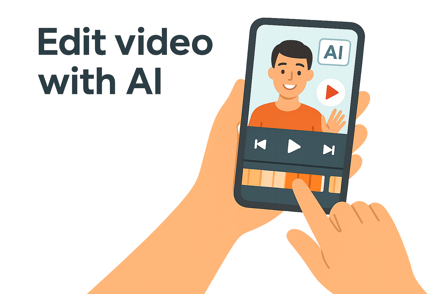 /Collection: /by davooda/Type: PNG/A vibrant digital illustration showcasing a person editing a video on a smartphone, emphasizing AI technology. Ideal for tech-related content and marketing.