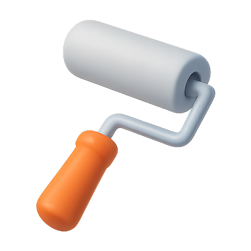 /Collection: /by davooda/Type: PNG/3D illustration of a paint roller featuring a smooth white roller and an orange handle, ideal for home improvement and DIY projects. Perfect for use in design related to painting and renovation.