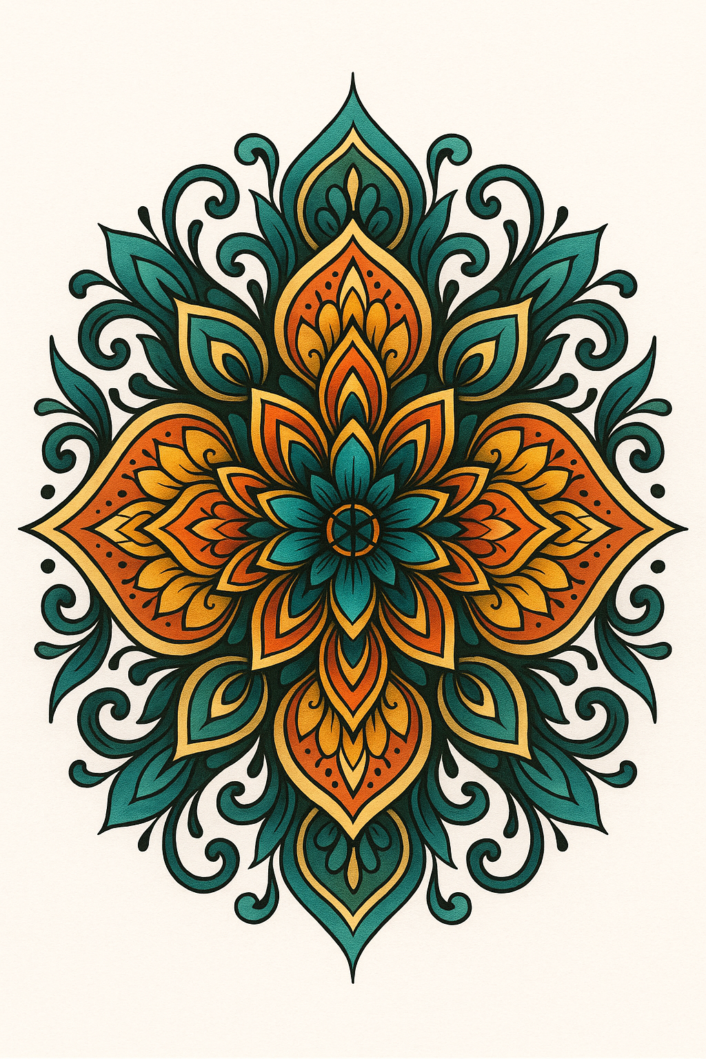 Intricate Mandala Design with Geometric Patterns and Floral Elements