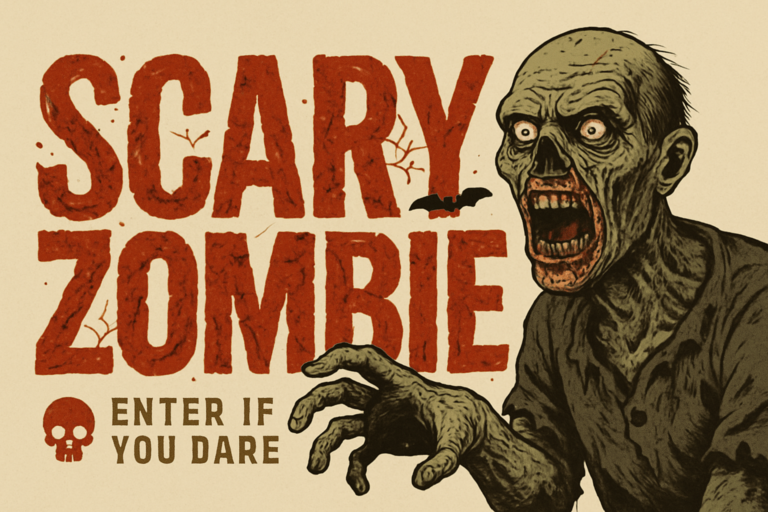 /Collection: /by davooda/Type: PNG/A striking horror-themed illustration featuring a terrifying zombie, perfect for Halloween promotions or spooky events. The design uses bold colors and graphic elements to evoke fear.