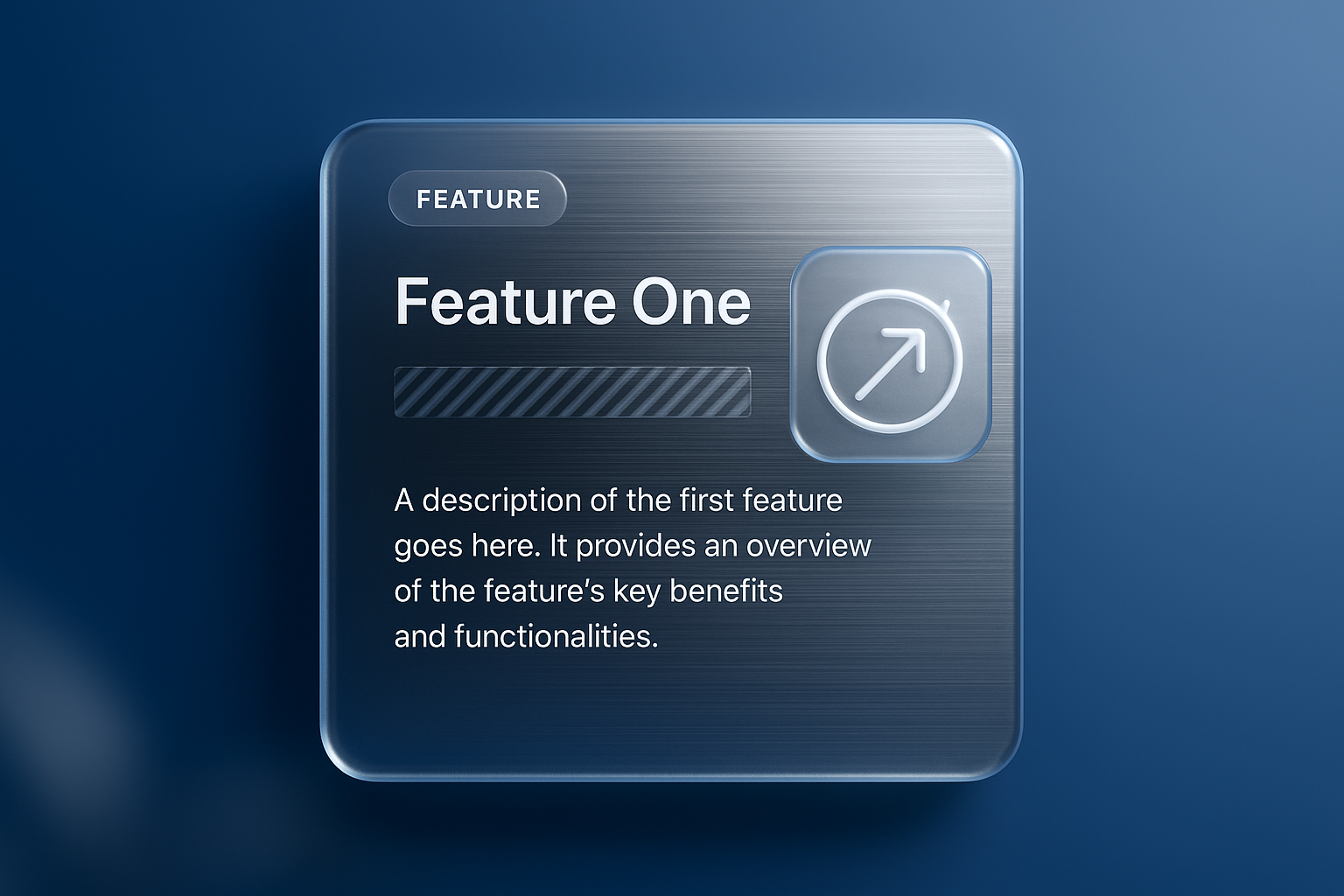 /Collection: /by davooda/Type: PNG/This image showcases a sleek, brushed metal texture background, featuring a transparent glass effect. It is designed for web pages with feature descriptions, integrating a modern aesthetic.