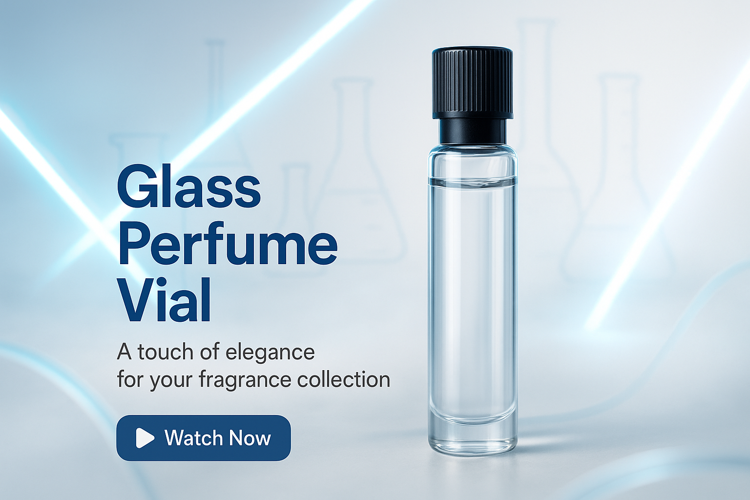 /Collection: /by davooda/Type: PNG/Stylish product showcase of a glass perfume vial set against a soft-focus laboratory backdrop, ideal for marketing fragrance collections. The design exudes elegance and sophistication.