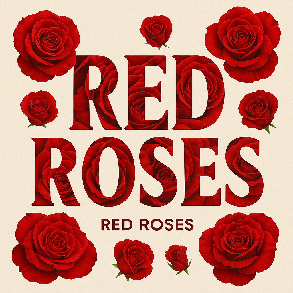 A striking graphic design focused on red roses, featuring bold typography. Ideal for floral-themed events, promotions, or social media posts.