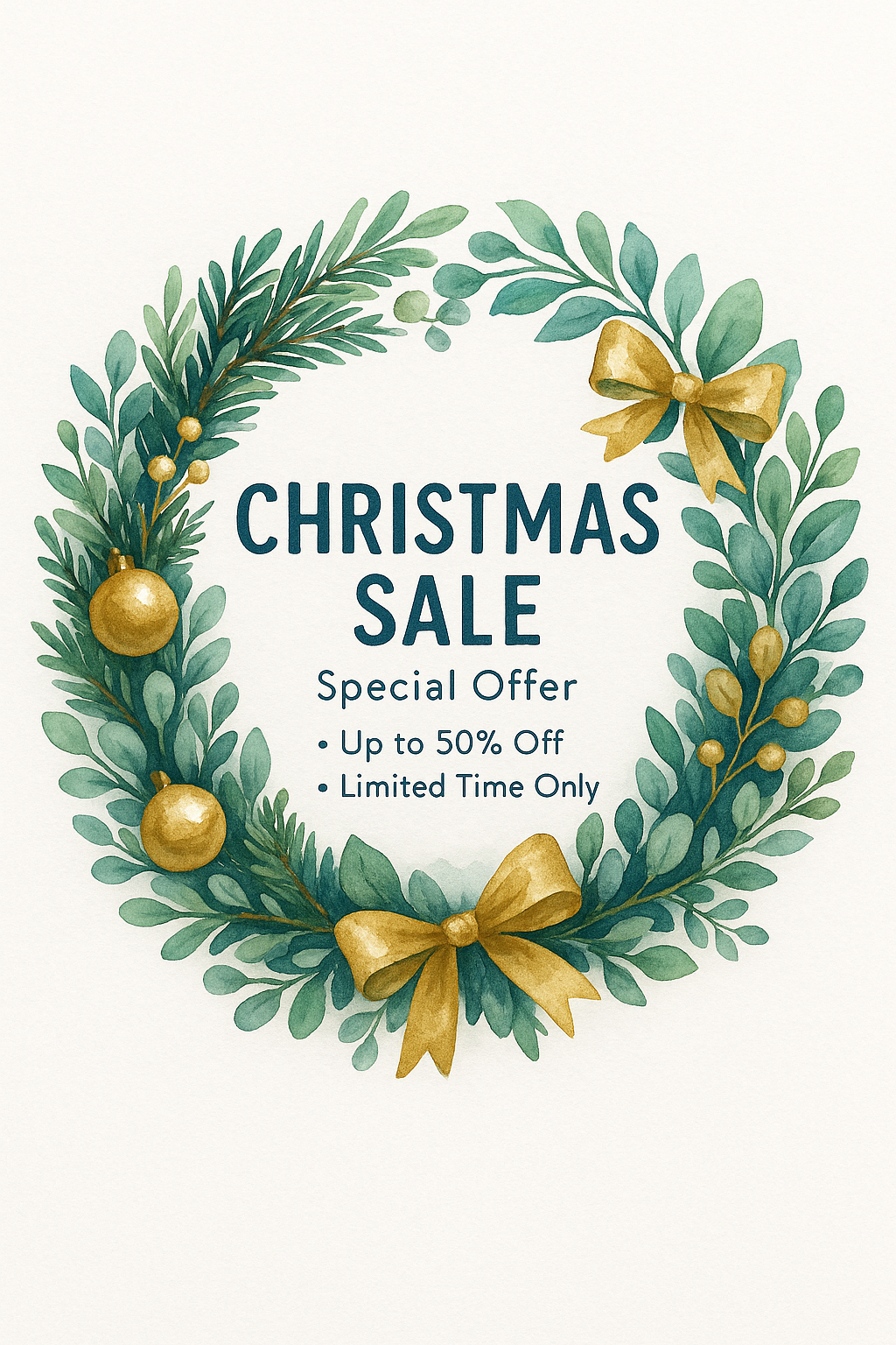 Festive Christmas Sale Promotion with Elegant Wreath Design