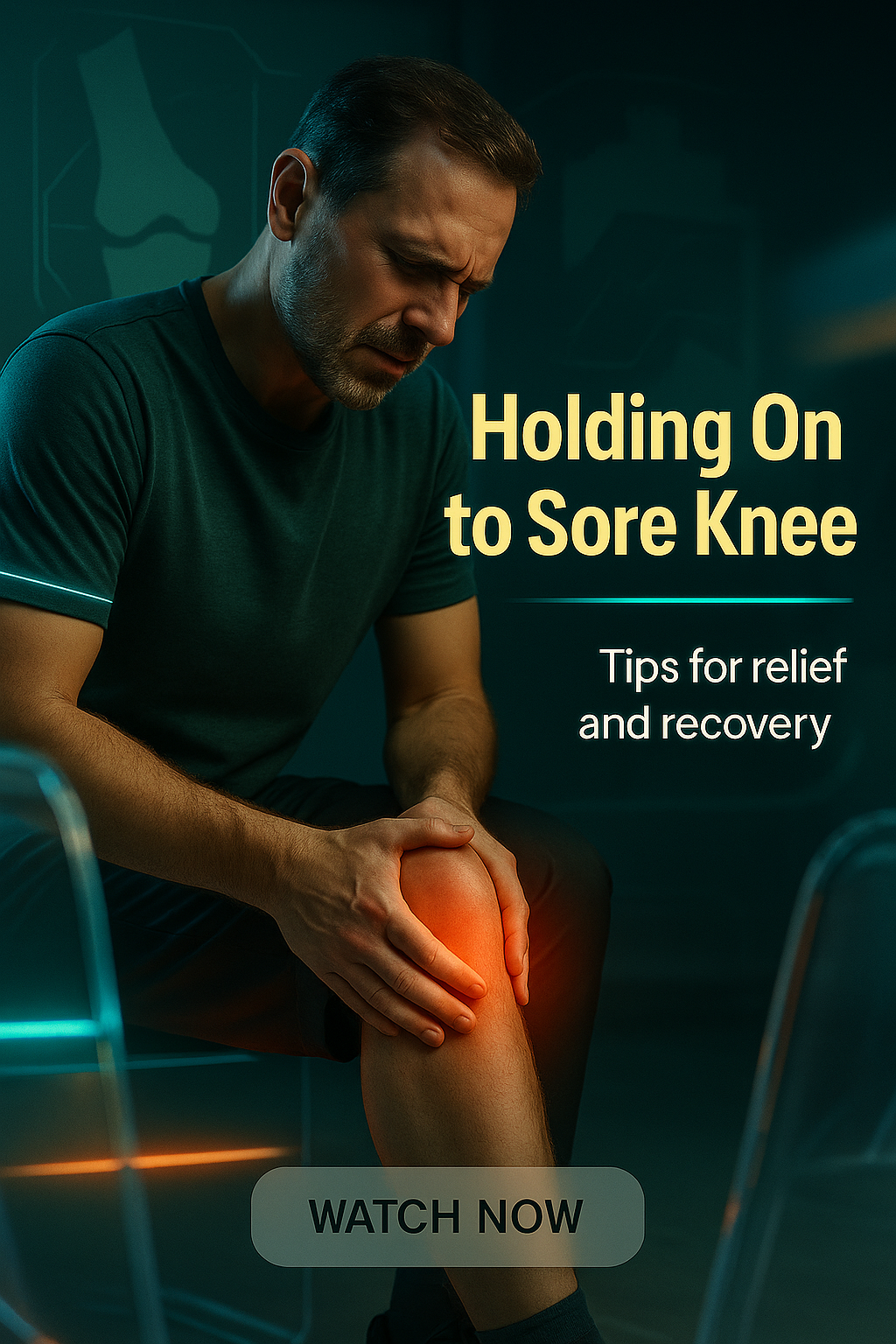 Engaging digital poster highlighting tips for managing knee pain, featuring a man in discomfort. Ideal for health and wellness promotions.