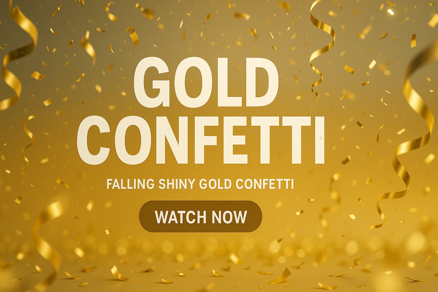 Dynamic promotional banner featuring falling gold confetti against a striking golden background, perfect for celebration-themed events and marketing.