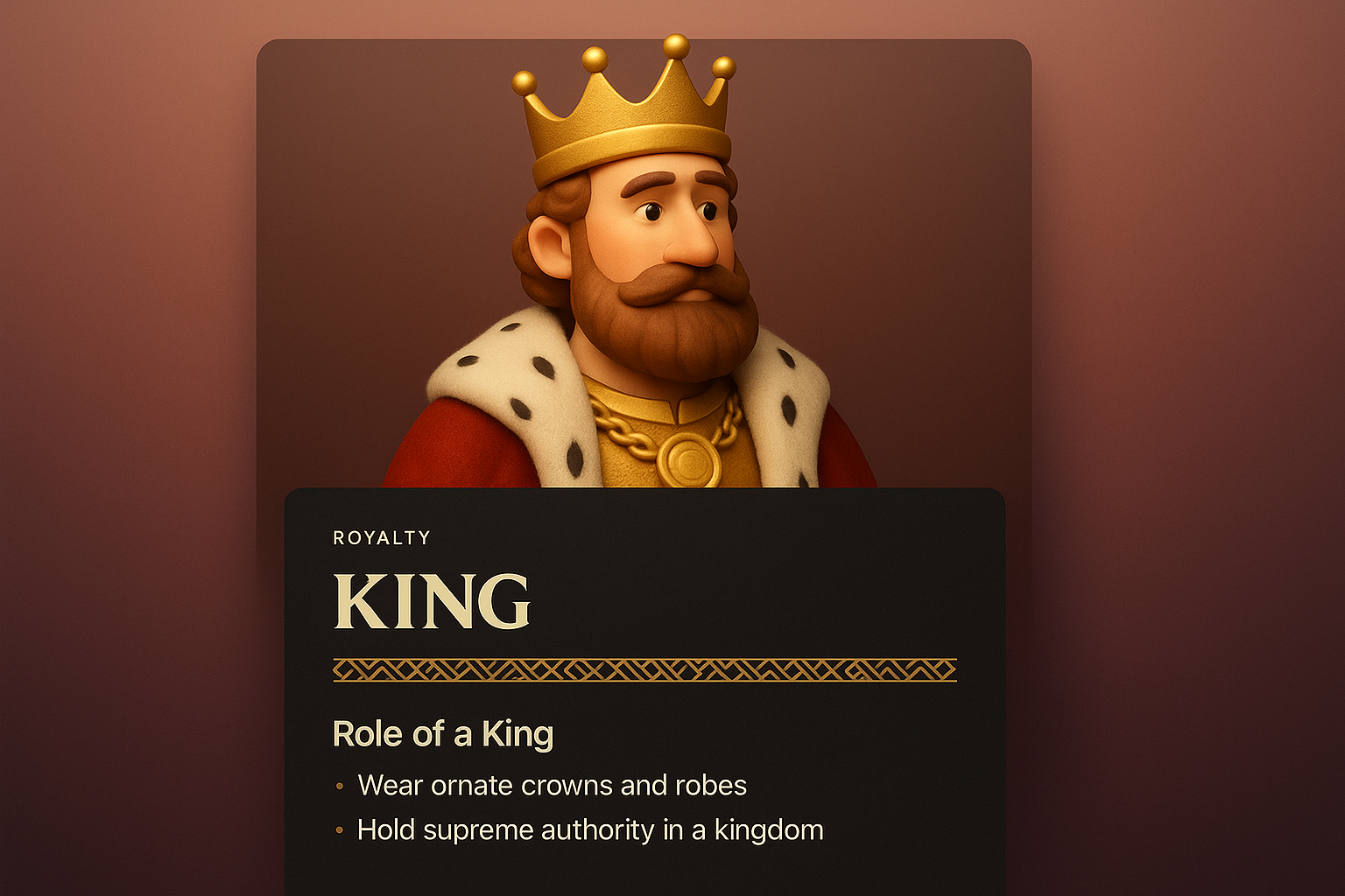 Elegant 3D King's Crown Illustration with Informative Overlay