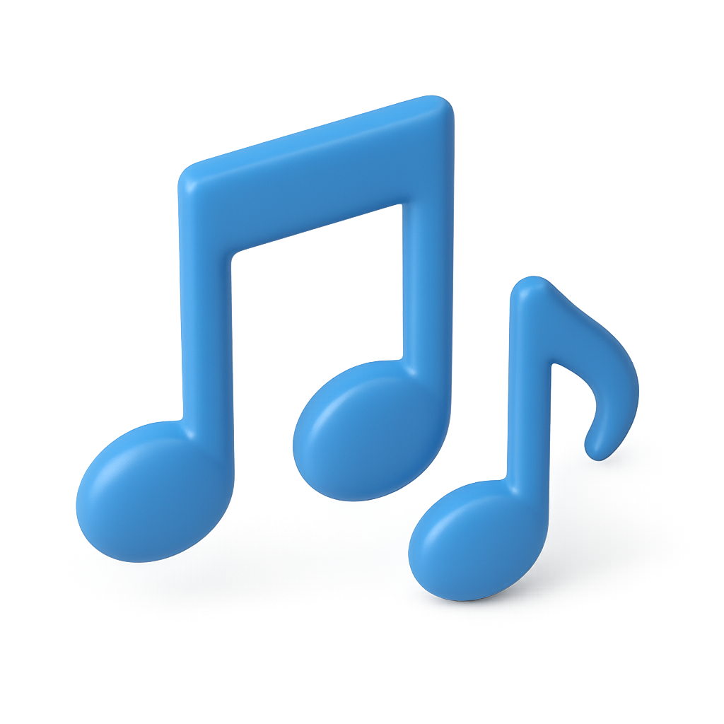 Stylized 3D Blue Musical Notes Icon with Isometric Design