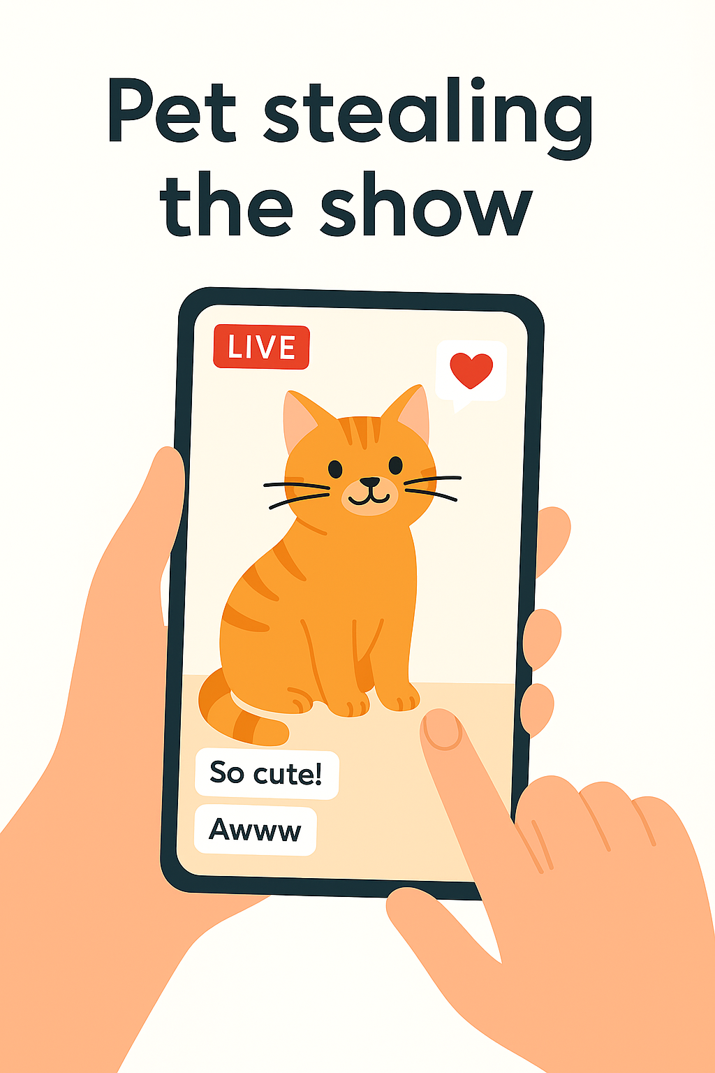 Illustration of a Live Streaming Pet Show on a Mobile Device