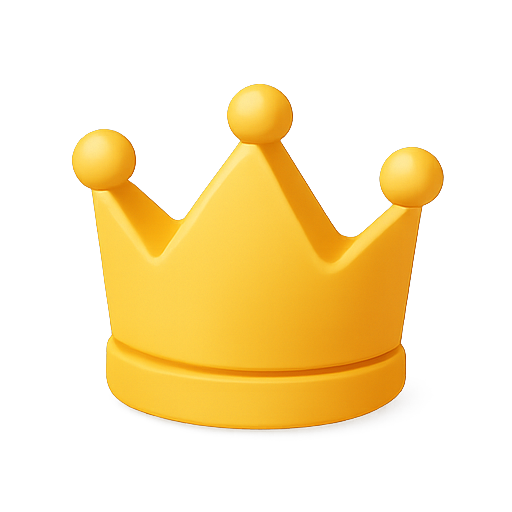 A 3D-rendered yellow crown icon, representing royalty and achievement. Ideal for use in digital communication, social media, or design projects focused on celebration and success.