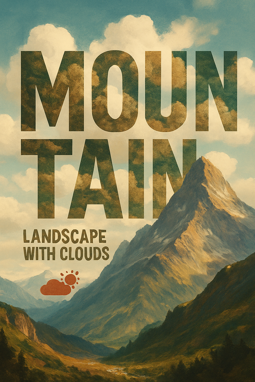 Realistic Cloudy Mountain Peak Illustration with Text Elements