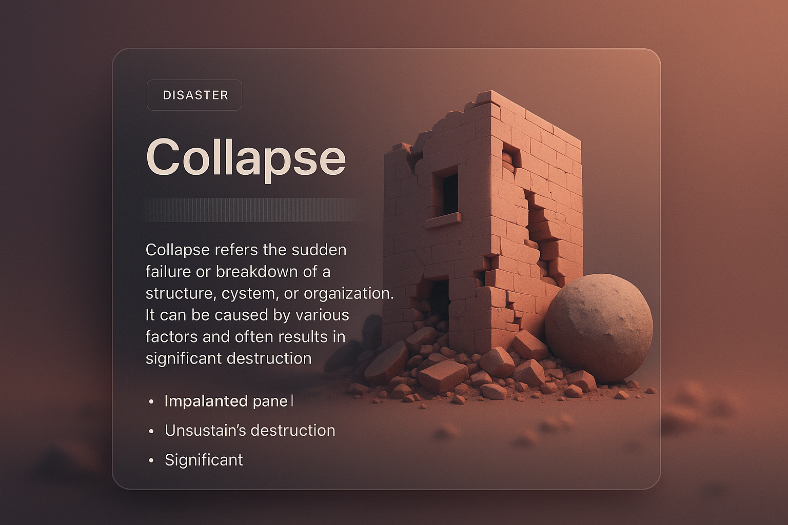 A visually striking 3D illustration depicting a crumbling structure with an accompanying text block. The design integrates a dark panel and smooth gradient background for depth.