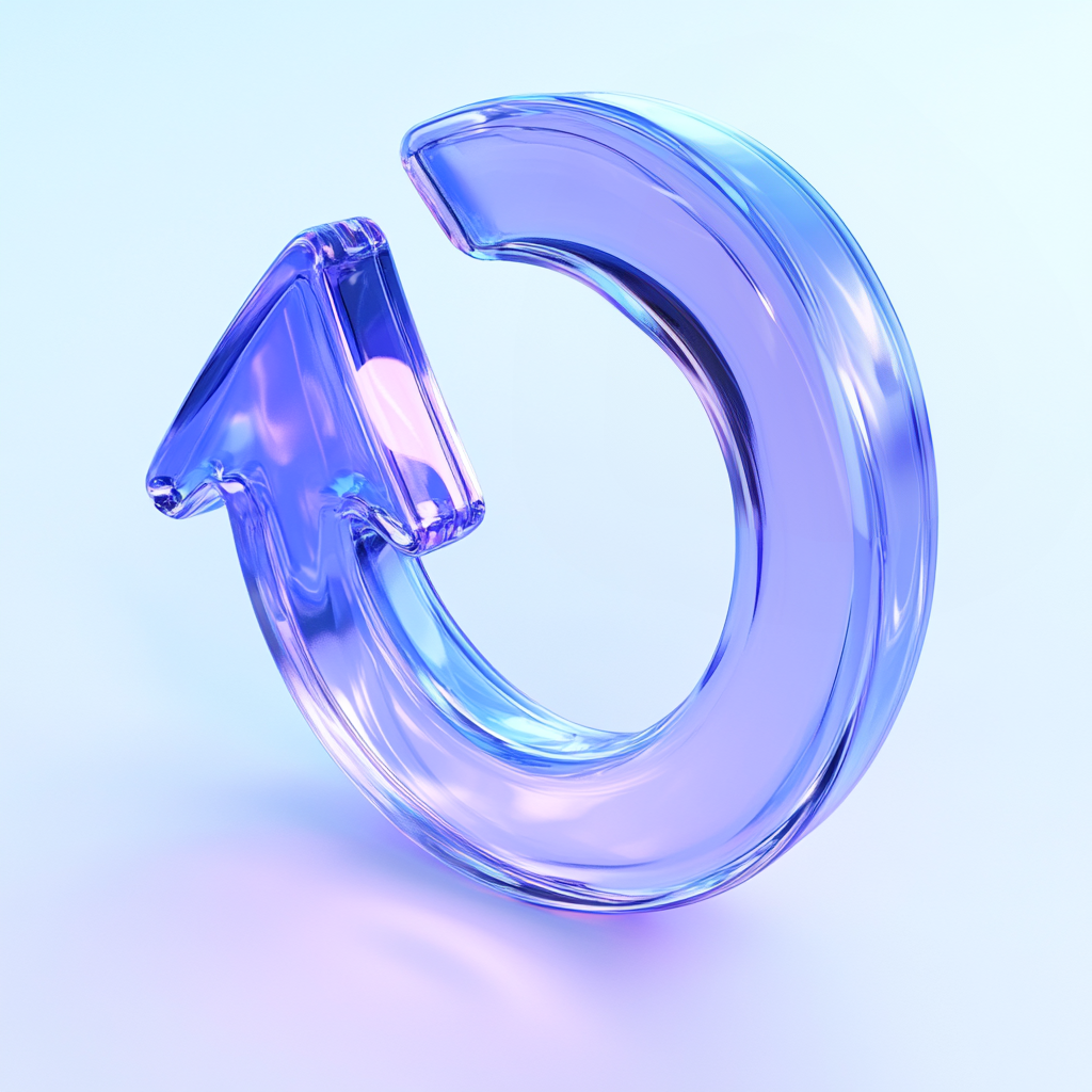 A modern 3D graphic representation of a circular arrow in a translucent blue finish, ideal for tech or design-related applications. Its sleek design makes it suitable for websites or apps focused on innovation.