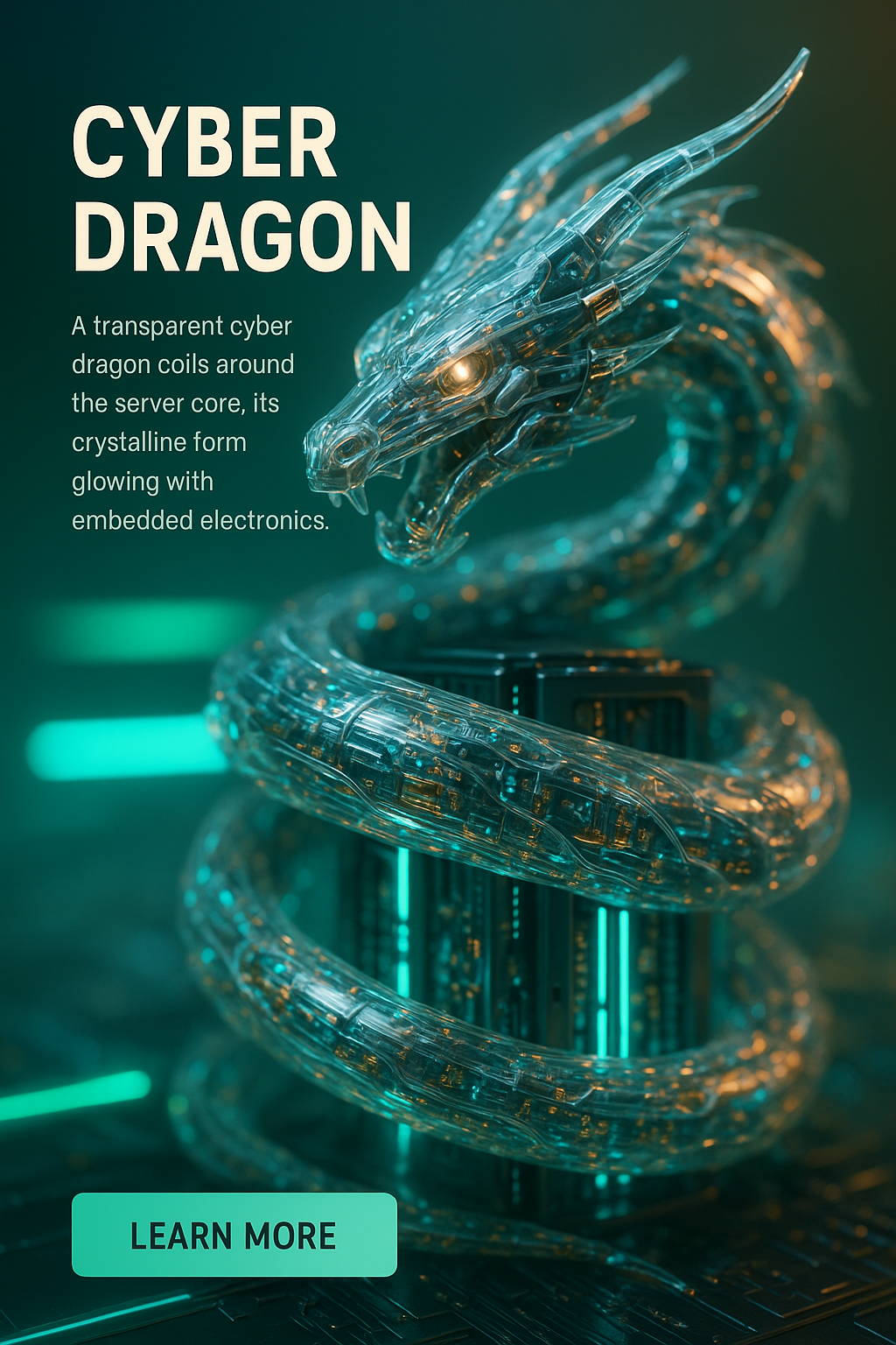 Hyperrealistic Cyber Dragon Wrapped Around a Server Core