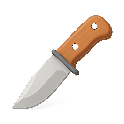 A stylized icon of a knife featuring a sleek silver blade and a wooden handle, suitable for use in culinary or outdoor-themed graphics.