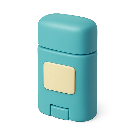 A modern deodorant stick design featuring a minimalist aesthetic with a blue body and a contrasting yellow label. Ideal for eco-friendly product marketing.