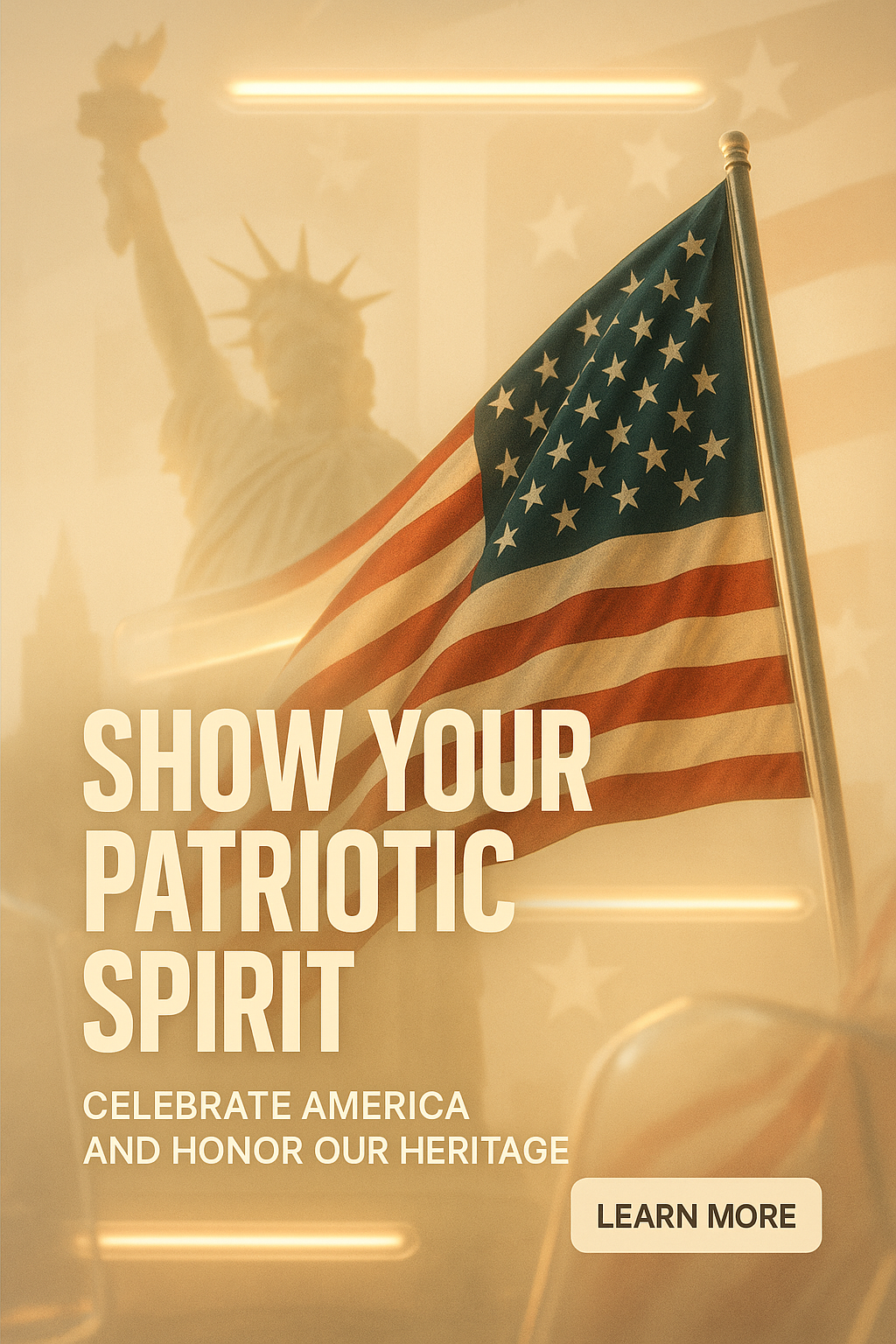 Promotional Banner Featuring American Flag and Patriotic Theme