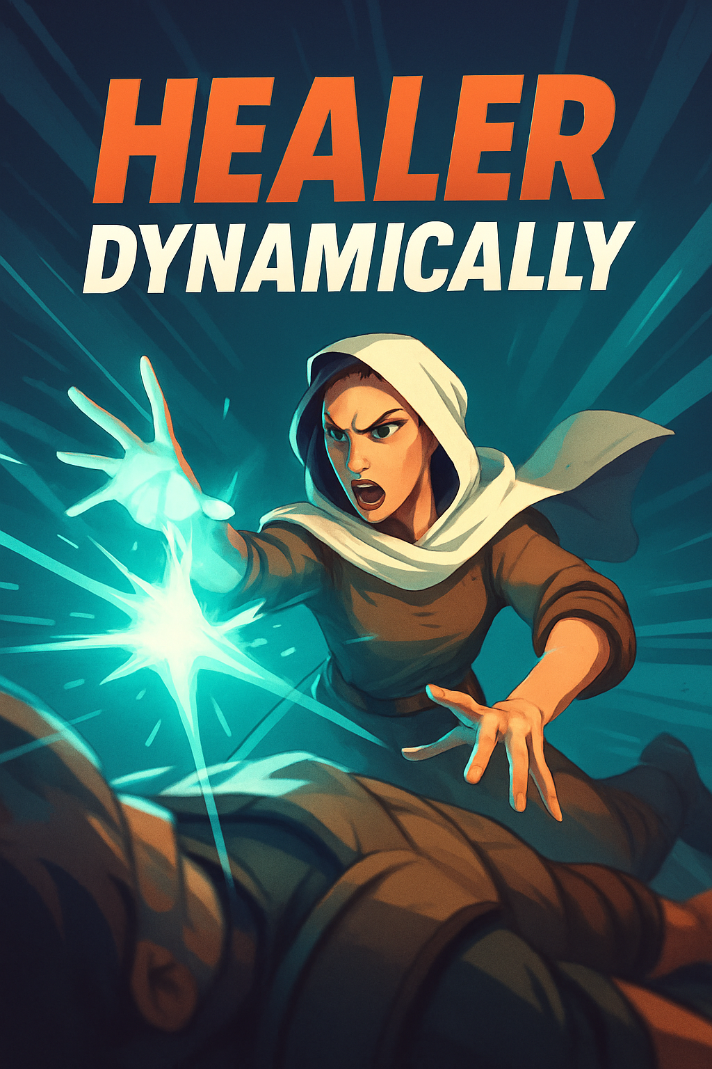Dynamic Healer Illustration with Bold Title Elements