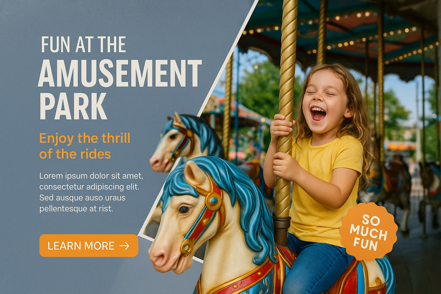 Excited Girl Enjoying Carousel Ride at Amusement Park