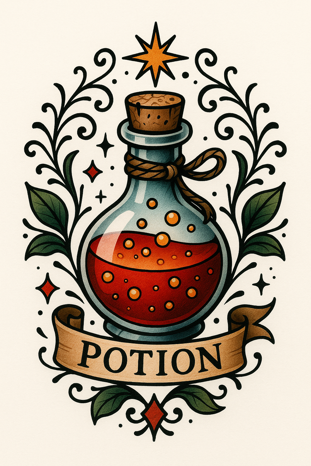 Illustrative Potion Bottle Design with Decorative Elements