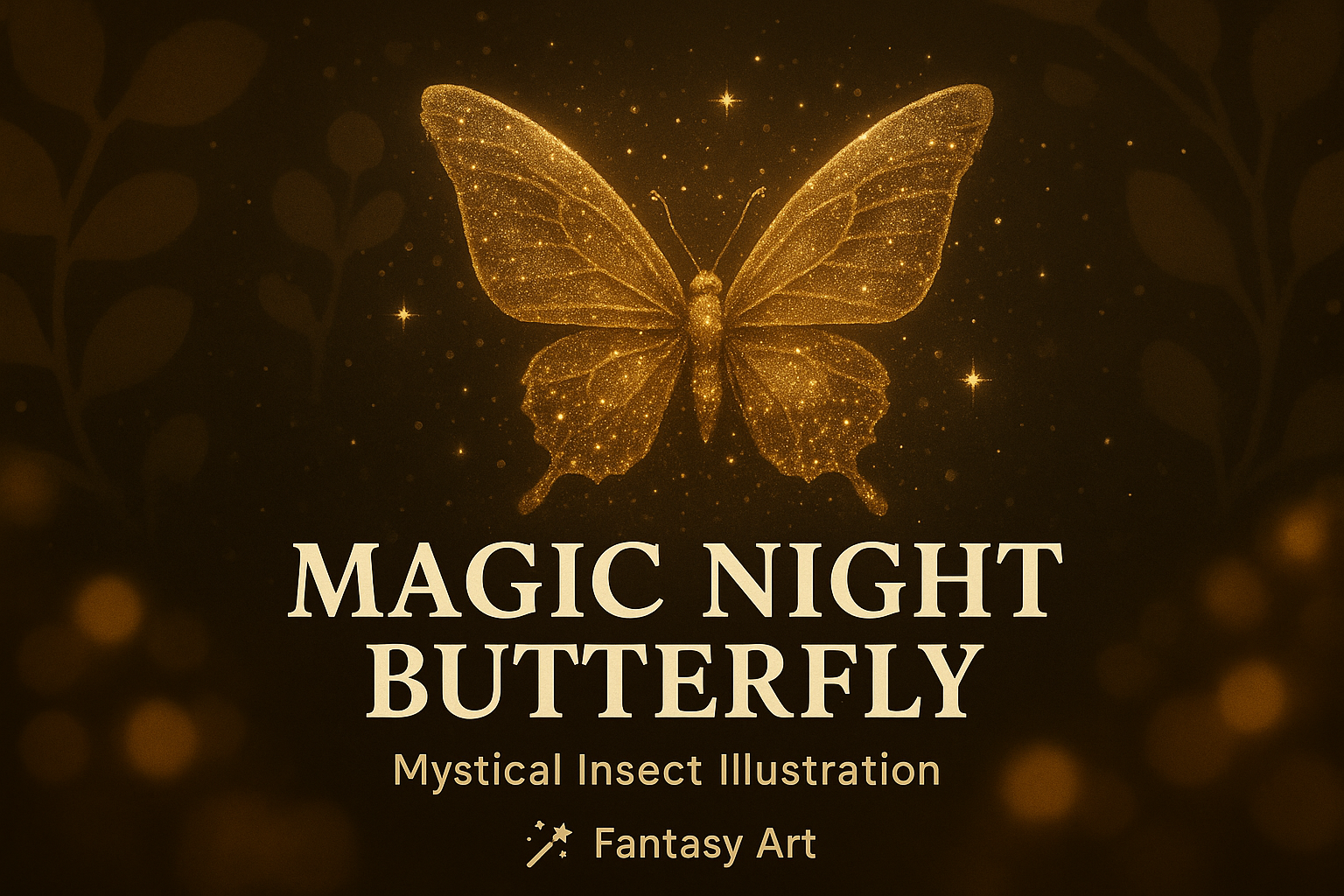 Mystical Golden Butterfly Illustration with Fantasy Elements