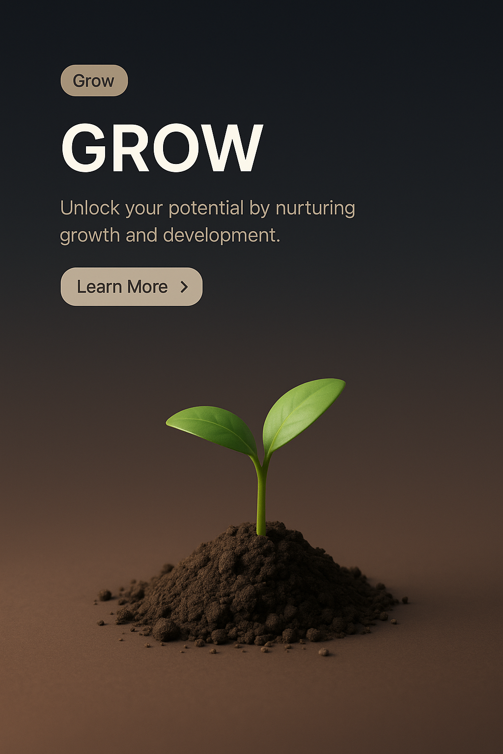 /Collection: /by davooda/Type: PNG/A visually striking 3D representation of a small plant sprouting from soil, set against a smooth gradient dark background. Text elements are minimalistic and well-designed.