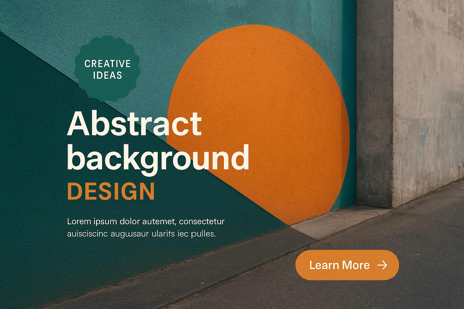 /Collection: /by davooda/Type: PNG/This image features a vibrant abstract design with teal and orange geometric shapes, layered composition, and balanced text elements, creating a professional yet engaging aesthetic.