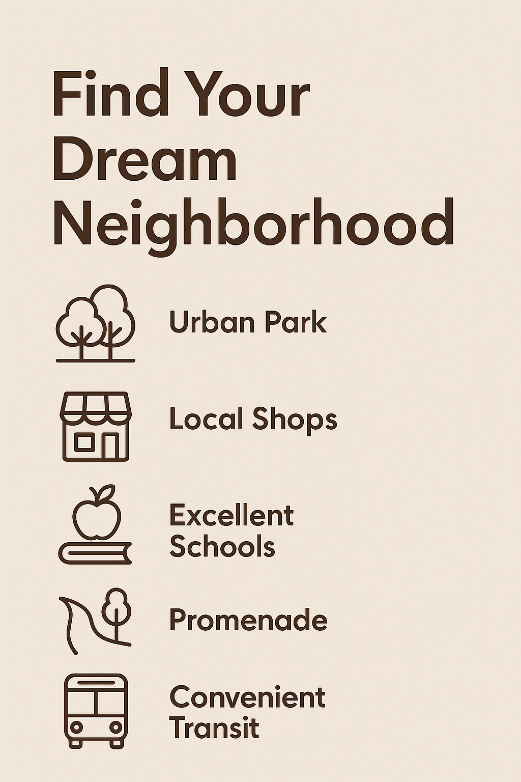 Real Estate Promotion Graphic Featuring Neighborhood Amenities