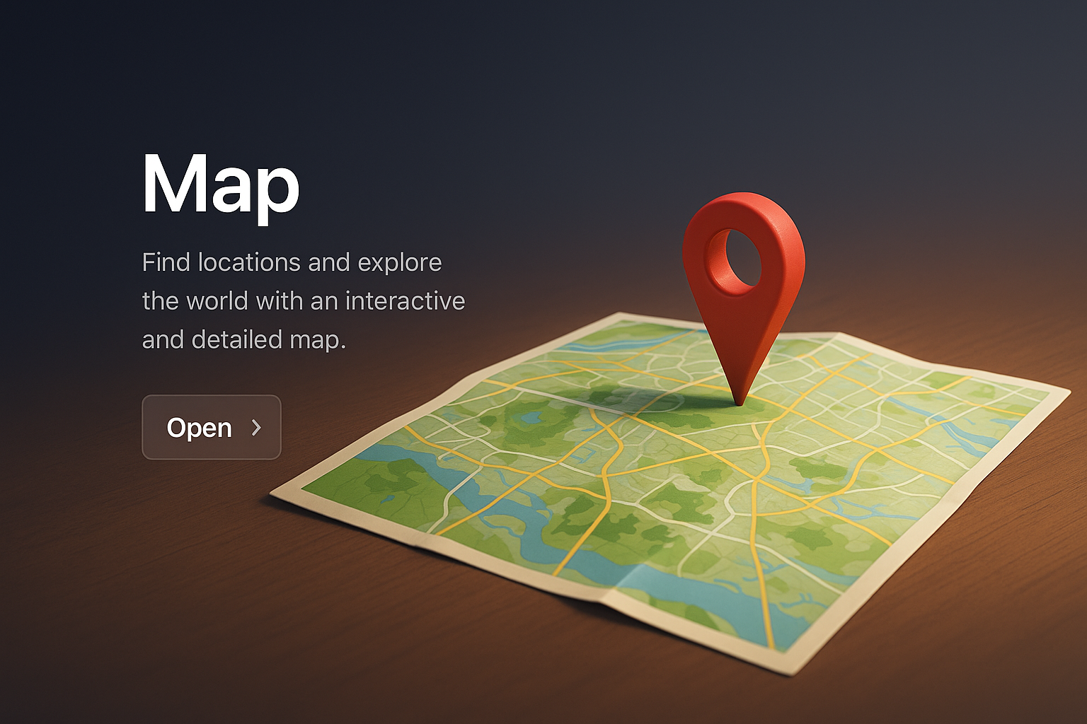 A visually appealing 3D map illustration featuring a prominent location pin. The scene is designed for clarity and engagement with a dark gradient background.
