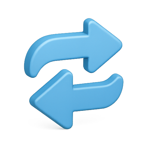 A modern, stylized blue double arrow icon representing navigation or exchange concepts. Ideal for UI/UX design, application interfaces, or instructional materials.