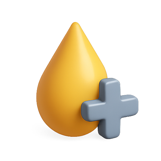 Stylized 3D graphic featuring a yellow drop shape accompanied by a gray plus symbol, ideal for healthcare, wellness, or product features.