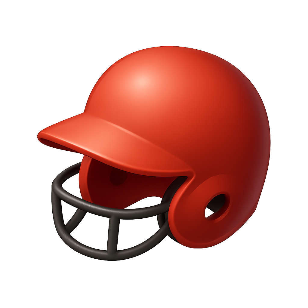 A vibrant 3D icon of a red football helmet, featuring a smooth surface and a black faceguard. Ideal for sports-related applications or graphics.