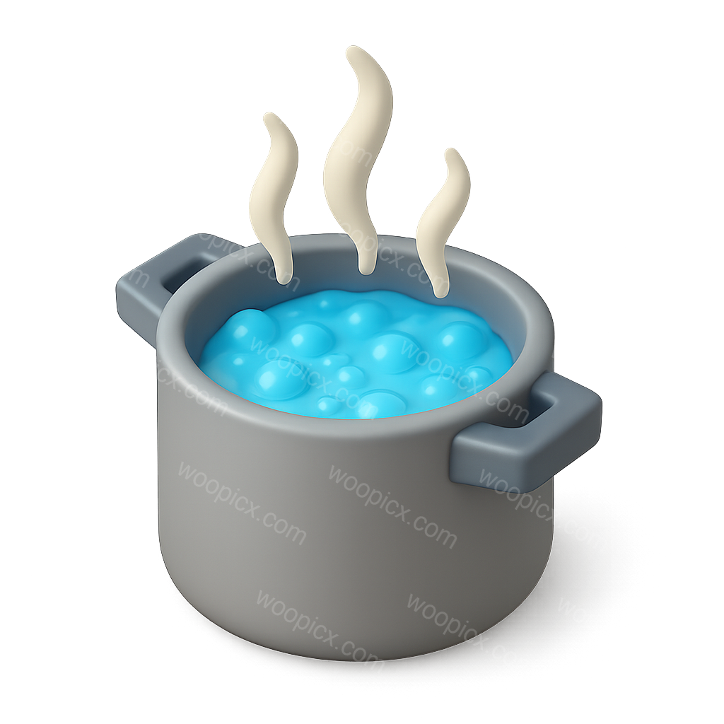 Stylized 3D Boiling Pot Icon with Steam Effects