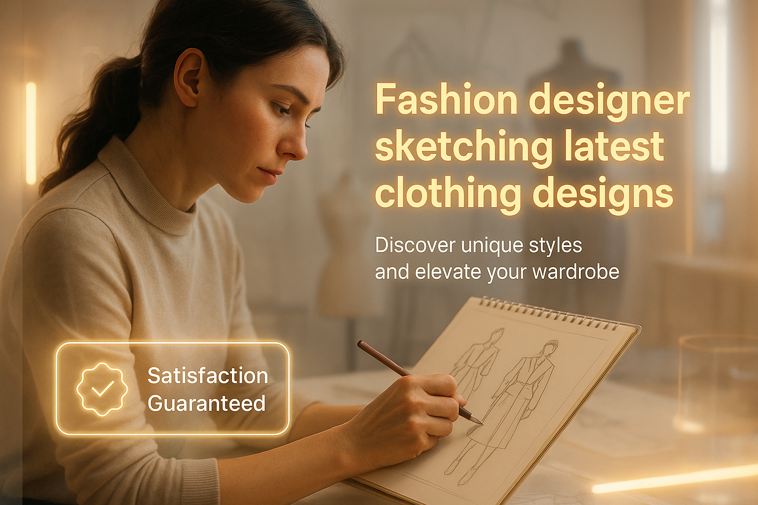 Fashion Designer Sketching Clothing Designs in a Creative Workspace