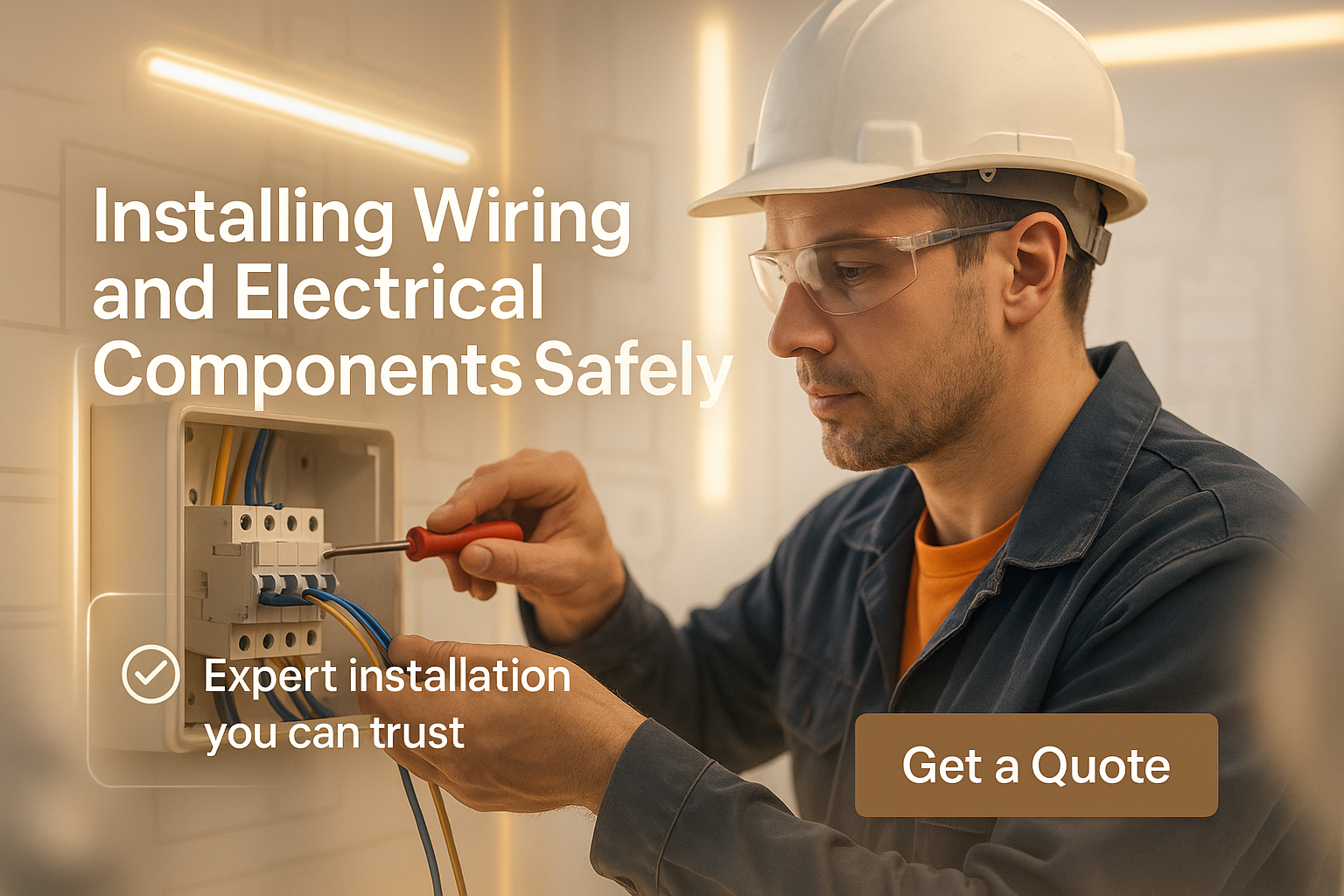 /Collection: /by davooda/Type: PNG/An informative graphic showcasing a skilled electrician installing wiring and electrical components. Ideal for promoting electrical services with a modern and professional design.