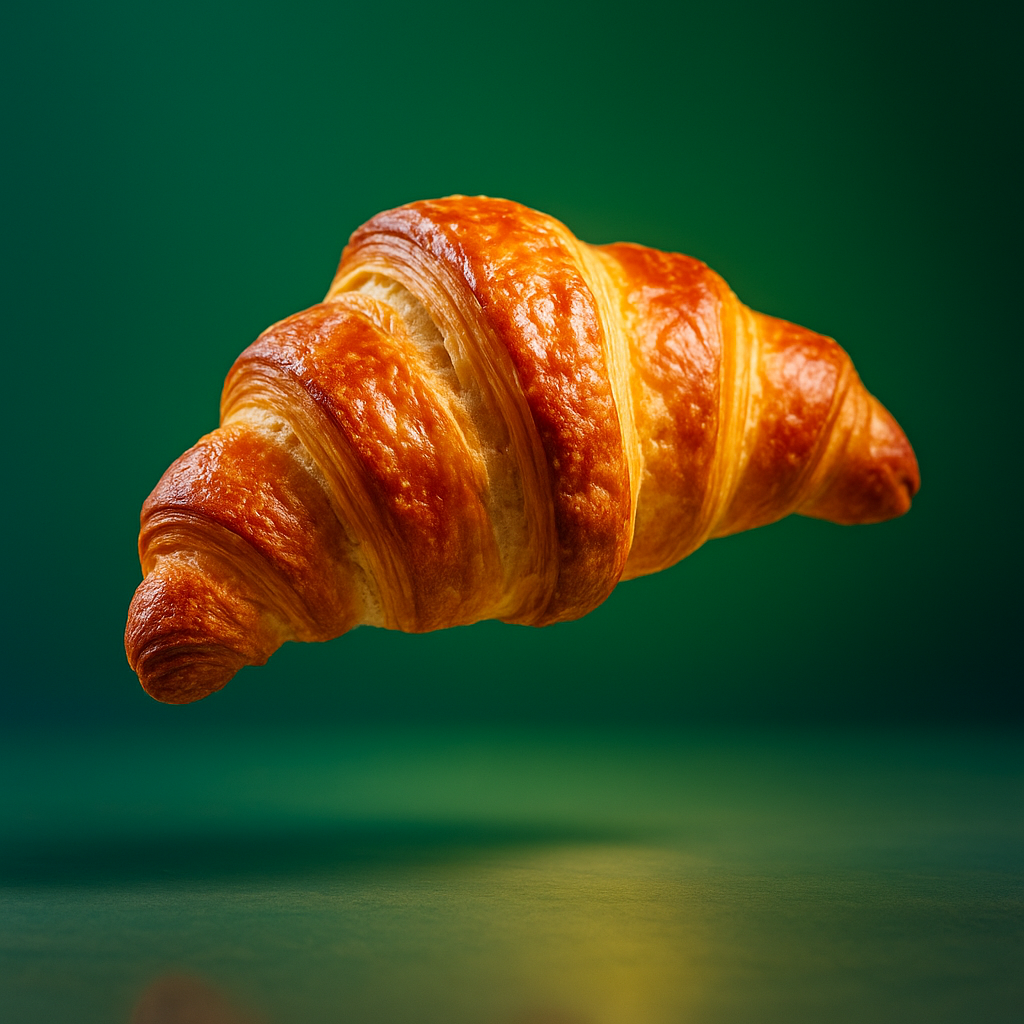 Dynamic Realistic Croissant in Air with Gradient Background