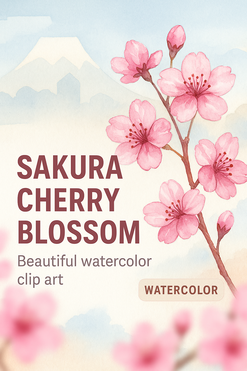 /Collection: /by davooda/Type: PNG/Delicate watercolor artwork featuring sakura cherry blossoms, ideal for invitations, greeting cards, or seasonal decor. Soft colors and elegant design elements enhance its aesthetic appeal.