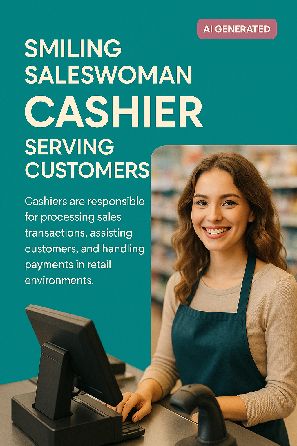 Promotional Graphic Featuring a Cashier in Retail Environment