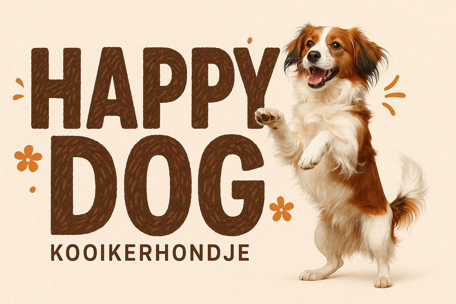 A vibrant and cheerful graphic featuring a Kooikerhondje dog with playful typography, perfect for pet-related promotions or social media posts.