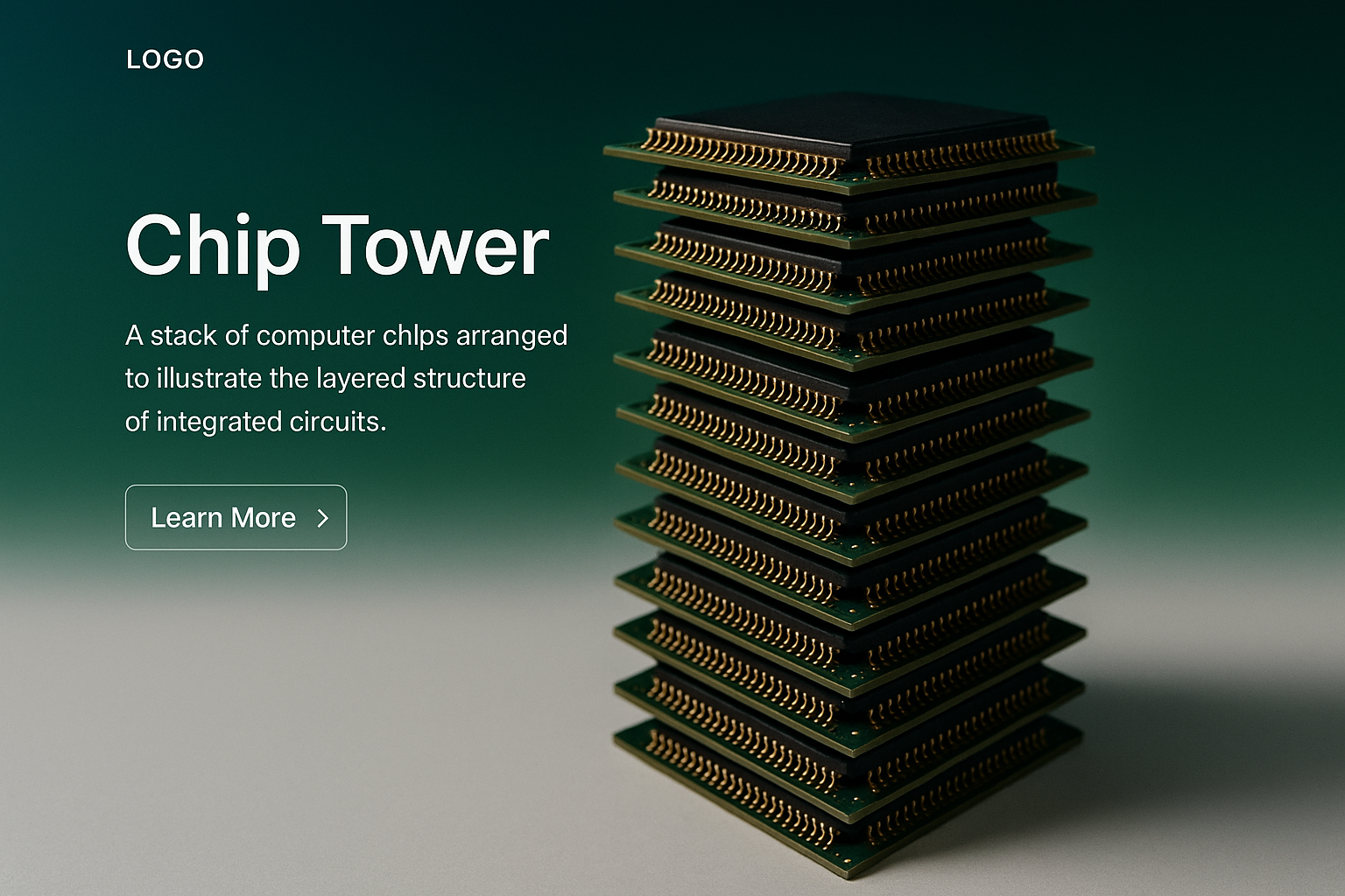 An elegant illustration of a stack of computer chips, showcasing the layered structure of integrated circuits against a gradient background. Ideal for web design.